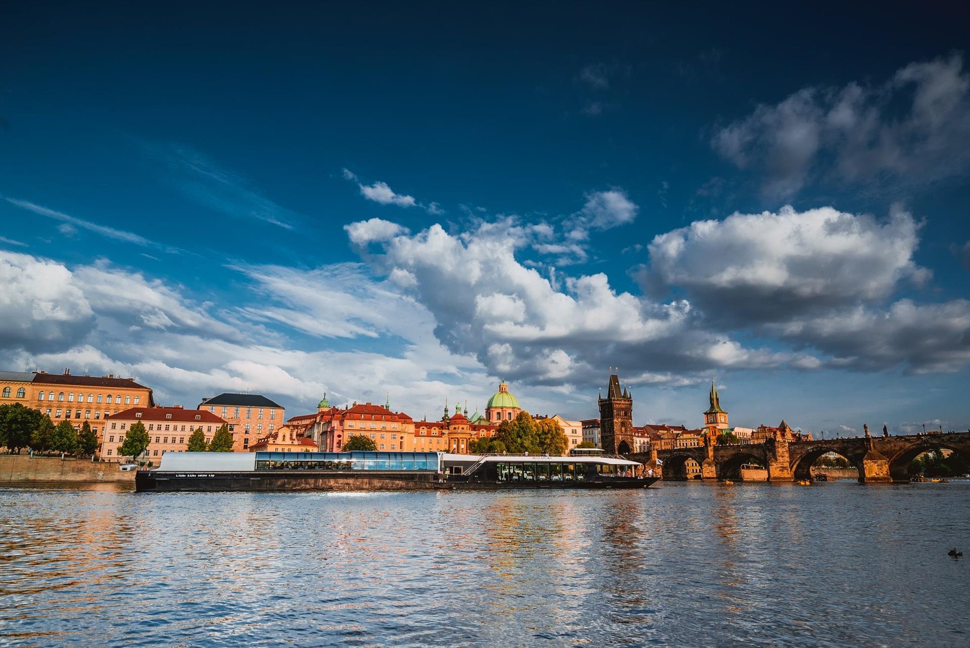We'll pick you up from your hotel and take you to the boat, where your magical evening begins. Enjoy a welcome drink at sunset as the Prague Castle glows in deep orange.