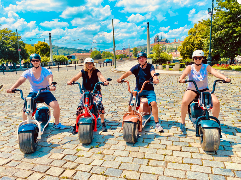 You will be accompanied by an experienced guide who will point out all the amazing sights and attractions, but will also be able to help you with anything you need during your journey through Prague. Our staff will give you a safety briefing and allow you to test drive the SCROOSER before you set off. We will also provide you with a helmet and other accessories (backpack, gloves, raincoat, sunglasses) Don't worry, it's not as long as it sounds.